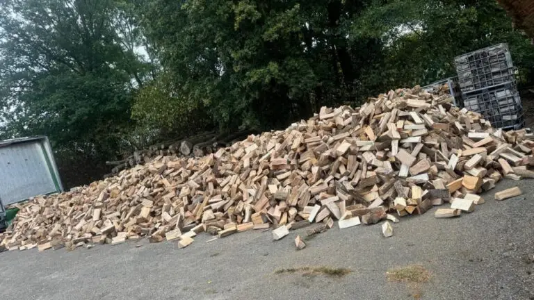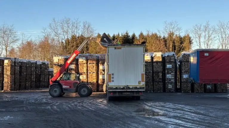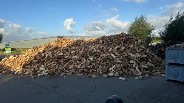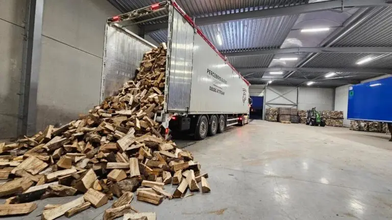 Bestellingen voor Walking Floor worden over het algemeen op bestelling geproduceerd. Dit betekent dat het hout 2 tot 3 dagen voor het laden wordt gespleten. Onze productie vindt plaats op een schone plaat onder een overdekt gebouw.